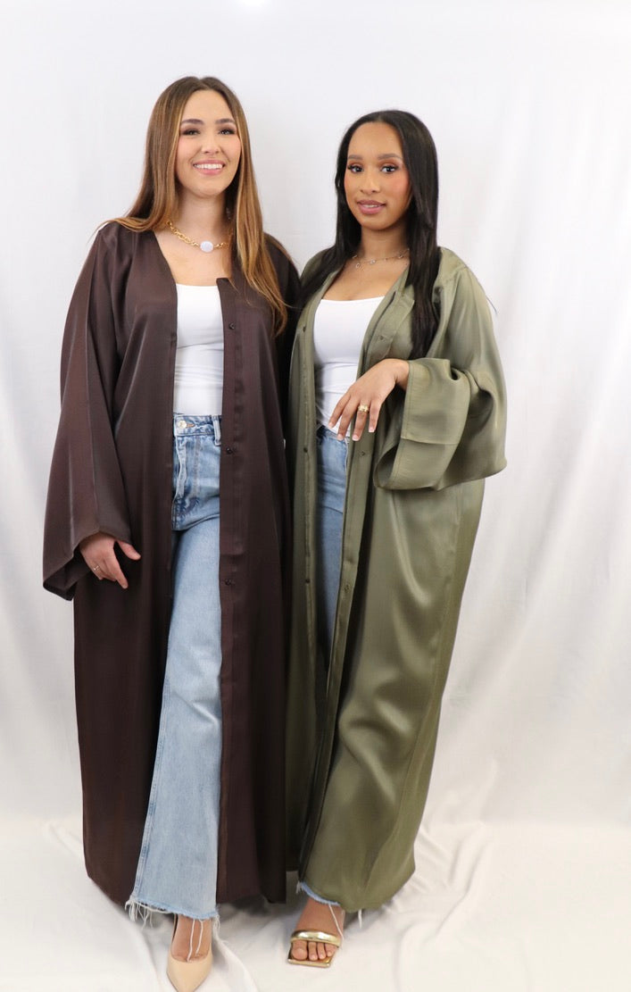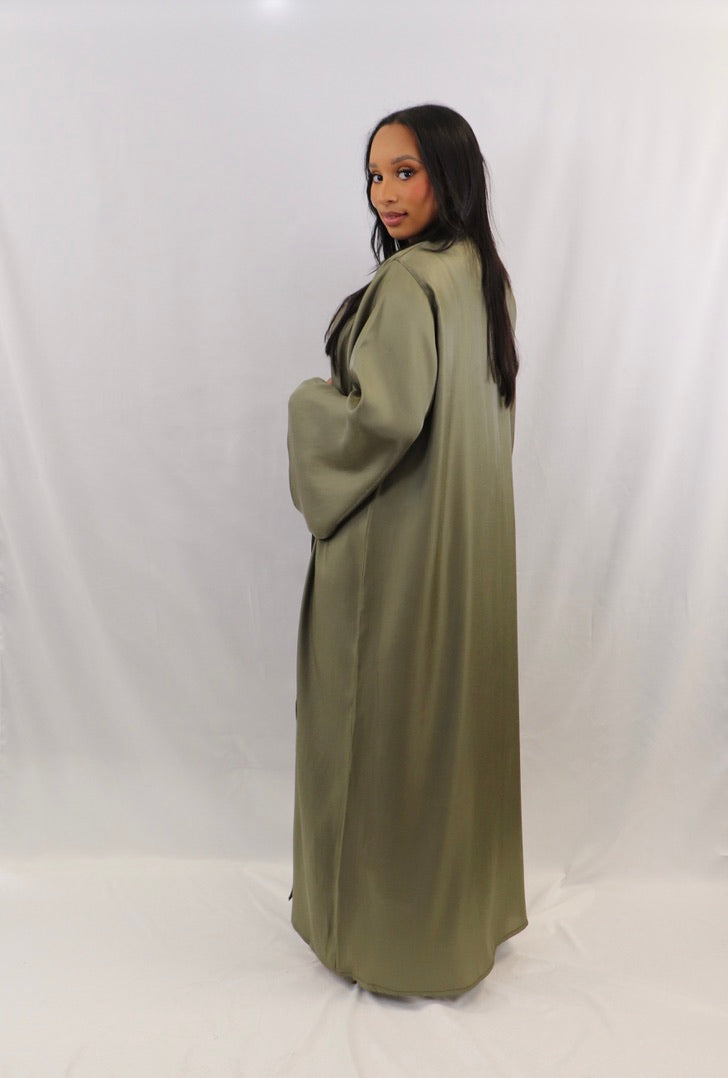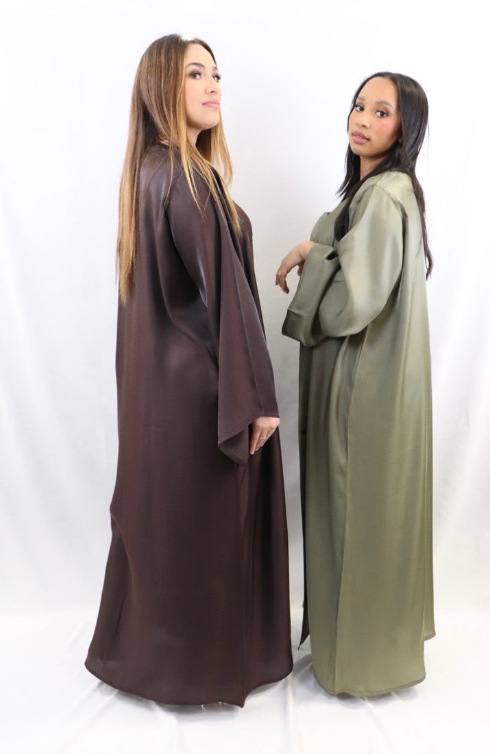 Abaya en tissu irisé et aux manches évasées, un modèle d'une simplicité maximale mais aussi d'une élégance incroyable.