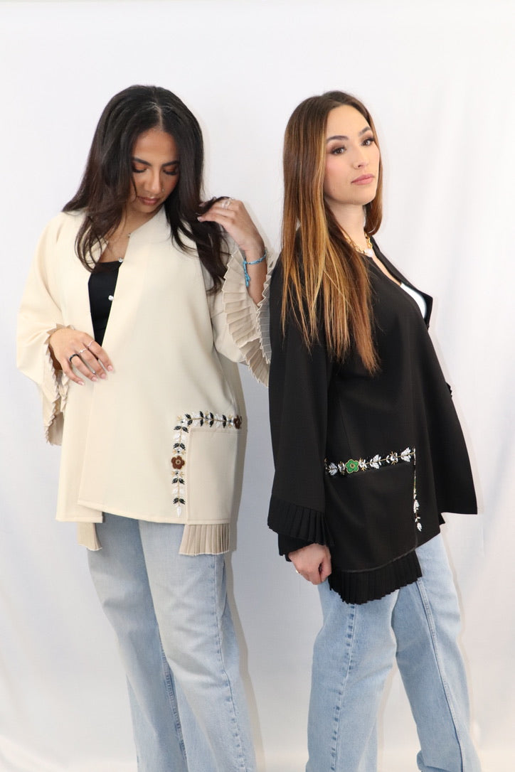Notre demi abaya est le complément parfait à toute garde-robe. Cette demi abaya peut être portée avec une jupe, un pantalon ou même une sous abaya. Son design polyvalent le rend idéal pour l'été, offrant à la fois confort et style.